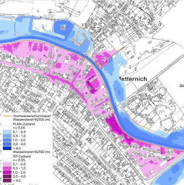 Der Experte der Firma Okeanos, Benjamin Freudenberg, richtete den Blick auf den kommunalen Hochwasserschutz. Er fasste zusammen, dass es 54 Bürgermeldungen mit 38 Maßnahmenvorschlägen nach den ersten Workshops gab. Nach drei Ortsbegehungen und drei Abstimmungsterminen konnten zehn Bürgervorschläge in konkrete Maßnahmenvorschläge zum Hochwasserschutz umgewandelt werden. Benjamin Freudenberg wies nochmals darauf hin: „Starkregenereignisse werden zwar mitgedacht, aber von der Landesregierung derzeit noch gesondert betrachtet und es gibt auch keine Fördergelder.“ Danach präsentierte er den aktuellen Stand des kommunalen Hochwasserschutz-Konzepts. Vor Bodenheim kann eine Hochwasserschutzmauer entlang der Kessenicher Straße gebaut werden, um den Ort vor Überflutung zu schützen. Kosten: ca. 1,2 Millionen Euro. In Lommersum kann ebenso eine Hochwasserschutzmauer entlang des Wirtschaftswegs nahe Schaesberggasse/Auf dem Brand (Kosten: ca. 1 Mill. Euro) helfen. Zusätzlich würde ein Hochwasserrückhaltebecken Lommersum bei HQ100 der Hochwasserentlastung dienen (Kosten: ca. 2,4 Mill. Euro). Eine Hochwasserschutzmauer entlang der Erft in Vernich ist deshalb knifflig, da über die Anwohner-Grundstücke gebaut würde. Nur wenn alle gemeinsam eine Genehmigung erteilen, wäre diese Mauer realisierbar. Benjamin Freudenberg relativierte: „Diese Mauer wäre eventuell nicht notwendig, wenn alle Hochwasser-Rückhaltebecken bei den Oberliegern der Erft realisiert werden. Metternich war während der Flut 2021 am großflächigsten betroffen. Dort wurden zuerst die Brücken betrachtet, die neu gebaut und mit einem größeren Durchfluss geplant sind. Zusätzlich kann eine 1,10 Meter hohe Mauer entlang des Fußwegs an der Swist Schutz bieten. Mobile Wände an den Brücken sowie bewegliche Gitter müssen dabei berücksichtigt werden (Kosten: ca. 6,5 Mill. Euro). Ein Hochwasser-Rückhaltebecken Metternich wurde zwar erwogen, aber wegen zu geringem Fassungsvermögen als nicht wirksam eingestuft. Benjamin Freudenberg stellte in Aussicht, dass der vollständige Bericht Ende 2025 an die Gemeinde übergeben wird.